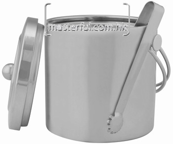 Ice bucket, double wall, with ice tong and ice guard, s/s