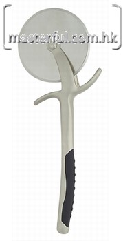Pizza cutter, zinc alloy, matt finish nickel plated (sandblasted) with soft vyram grips, wheel in s/s
