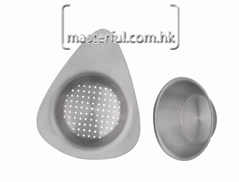 Tea strainer, with drip bowl, triangular, 18/8 s/s