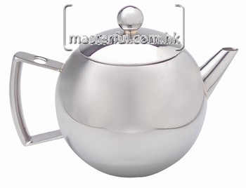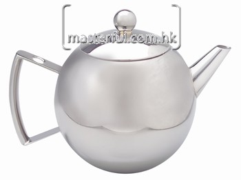 Teapot, ball shape, hollow handle with mesh basket, mirror finish, s/s, 1.25l