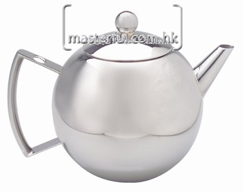 Teapot, ball shape, hollow handle with mesh basket, mirror finish, s/s, 1.50l