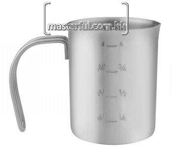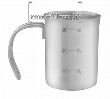 Measuring cup, see-through, bend handle, 1.0mm, satin finish, 18/8 s/s, 4 cup capacity