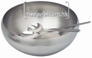 Salad bowl, 18/8 s/s, 23.5cm dia with a pair of 18/8 s/s salad server, length: 26cm