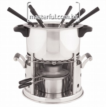 Fondue set, incl. 6 forks with black plastic handle, 14cm casserole, warmer with plate and burner holder, s/s