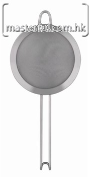 Strainer, s/s twilled weaving wire netting, 5mm wire handle, hook, header rectangle, 16cm dia
