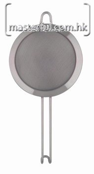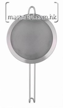 Strainer, s/s twilled weaving wire netting, 4mm wire handle, hook, header rectangle, 14cm dia