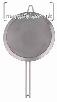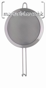 Strainer, s/s twilled weaving wire netting, 5mm wire handle, hook, header rectangle, 20cm dia