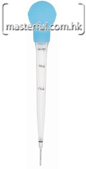 Baster, silicone, blue colour PC head tube with injector tip, 33cm, 3/4oz, 1/2oz, 1/4oz, 22.5ml, 15ml, 7.5ml