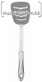 Slotted turner, soft grip handle, cast handle with pearl chrome plating, 18/8 s/s with mirror finish