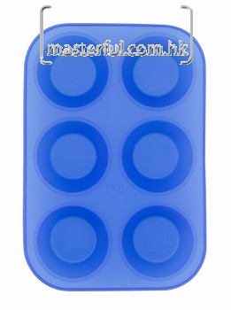 Muffin pan, 6 cup, silicone, cup size 70mm dia, overall size 270 x 185mm