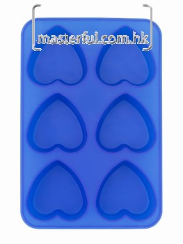 Heart muffin pan, 6 cavity, rectangular, silicone, 250mm L x 165mm W