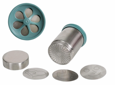 Decoration set for cappuccino and icing sugar, 18/8 S/S, 4 different pattern: icing sugar hole, smiley face, heart, coffee cup discs