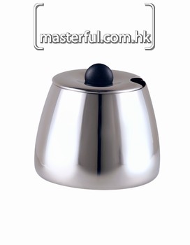 Sugar bowl, 0.35L, 18/8 S/S, round bottom with phenolic lid knob & S/S spoon.
